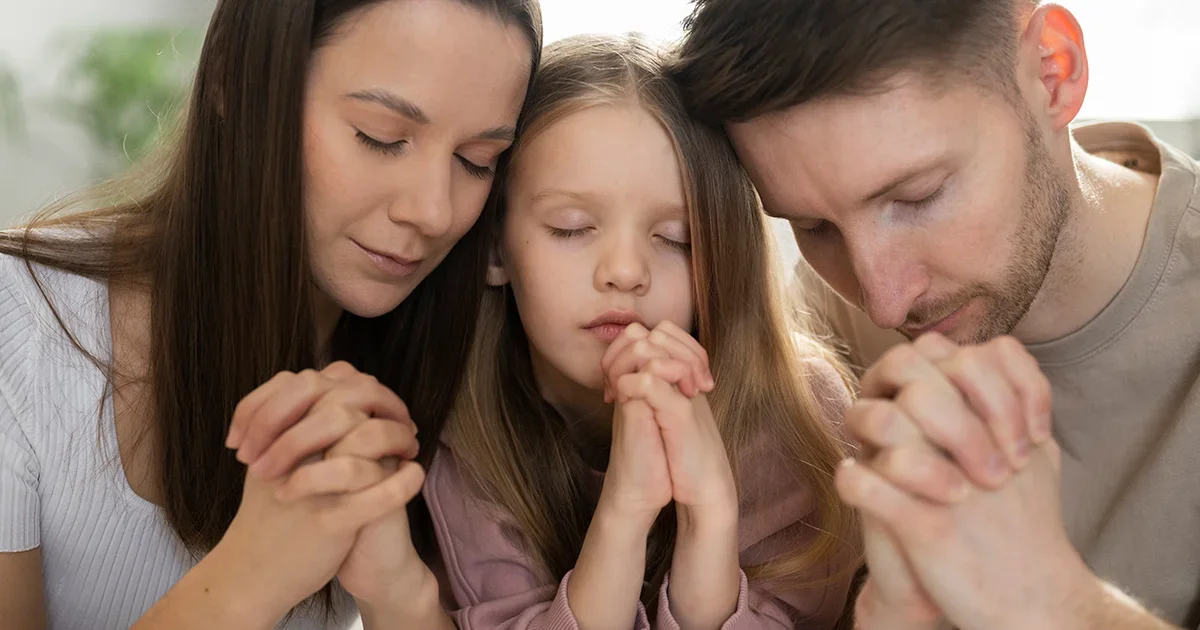 Torne o momento de oração um hábito em casa. Pode ser ao acordar, na hora das refeições ou antes de se deitar.